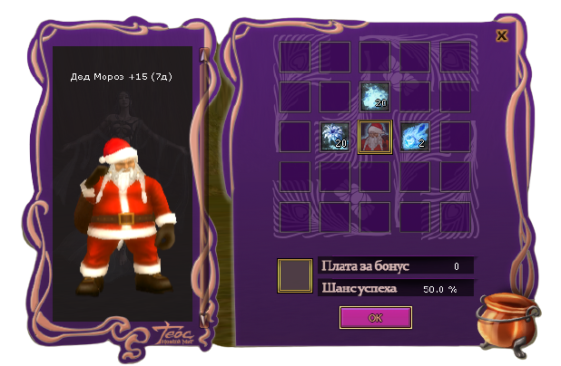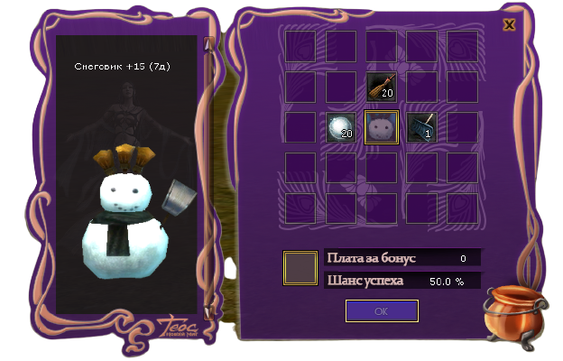 Лопата х1 - Злой Снеговик (босс) в Снежной долинеДля крафта Вам необходимо активировать Свиток (нажав правой кнопкой мыши), выбрать предмет, который хотите создать, и нажать кнопку "ОК". В сумке персонажа должно быть необходимое для крафта количество предметов.