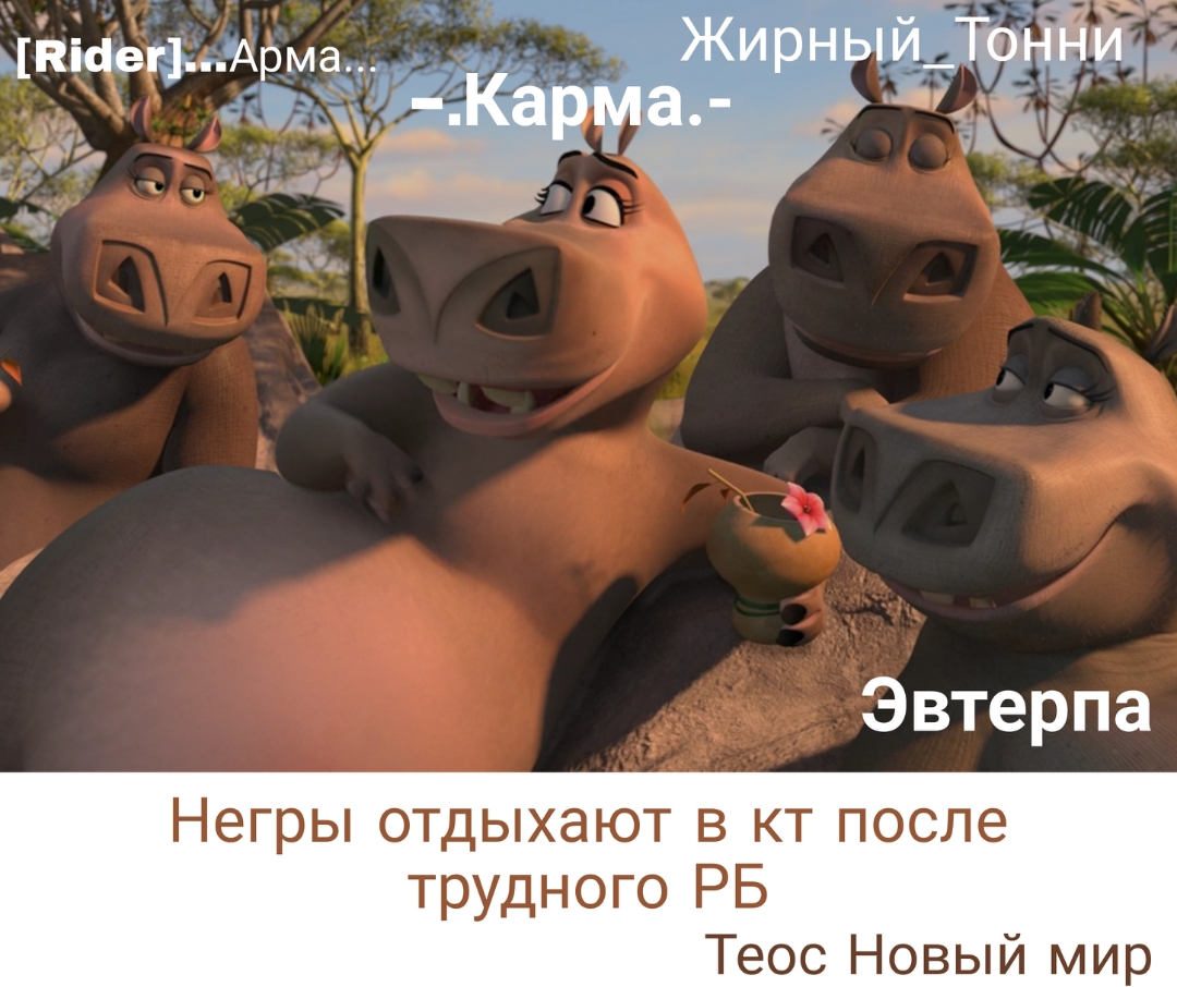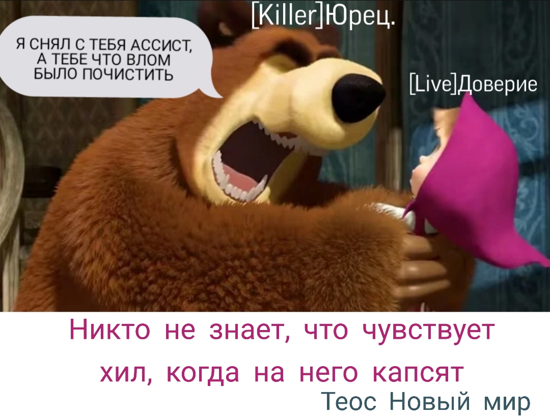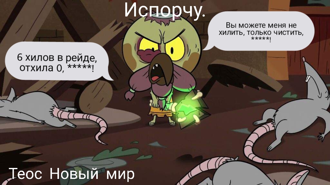 3. Кадр из мультфильма должен быть оформлен в виде комикса (смешные фразы в речевых облаках) с теосной тематикой (ники игроков, событие в игре-фан, фарм, рб и прочее);
