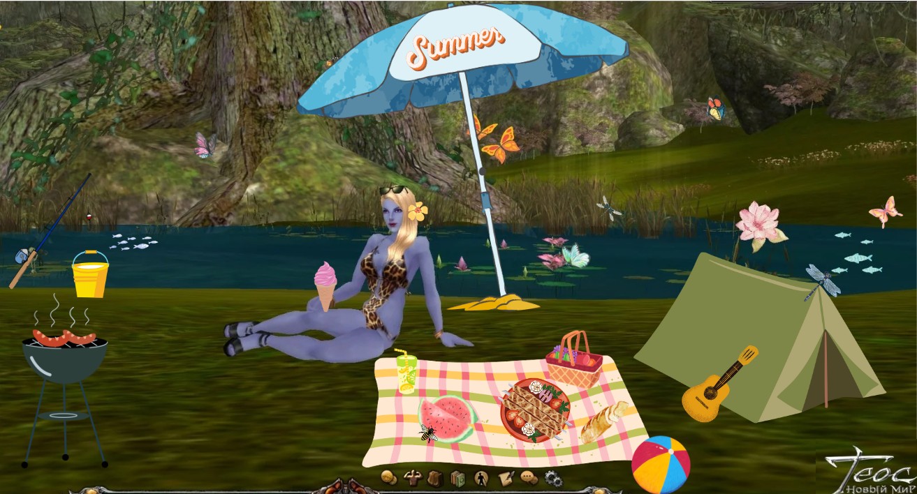 Ваша задача: сделать скриншот Вашего персонажа на фоне яркого, летнего пейзажа и при помощи графических редакторов или надписей придать Вашему скриншоту летнее настроение!