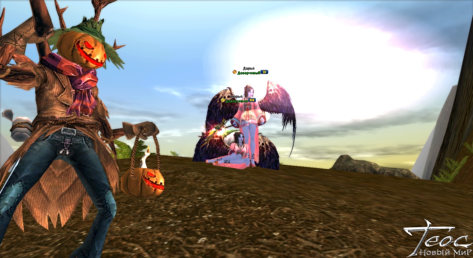 Что происходит? Повсюду огромные Фонари Джека-горящие тыквы, в локациях появились чудовища, которые никогда не населяли локации Нового Мира. Хеллоуин приходит в Новый Мир. В Теос врываются тени потустороннего мира - призраки, вампиры, утопленники, ведьмы, колдуны и всякая прочая нежить. Мир Теоса захватили Играющие тыквы и Тыквачи!